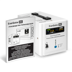 Стабилизатор напряжения ExeGate Expert Turbo AST-1500 (1500ВА, вход 80-260В, двойная цифр. индикация вход/вых. напряжения, выход 220В±8%, КПД 98%, 5 уровней защиты, задержка, усиленный метал. корпус, 2*Schuko, RTL)